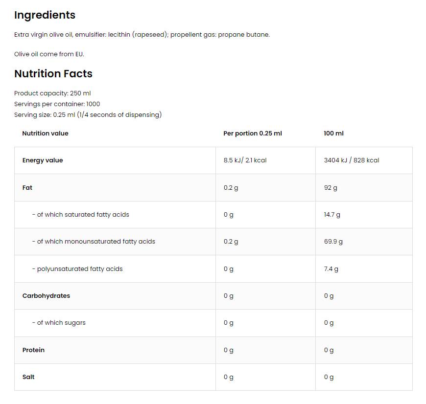 Σπρέι μαγειρέματος/ελαιόλαδο 250 ml