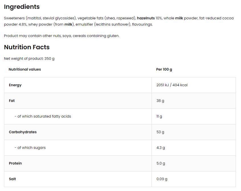 • Ισχυρισμόςsanγεύση σοκολάτας φουντουκιού.