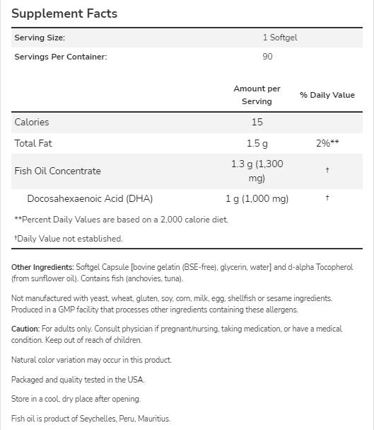 DHA - 1000 | Υποστήριξη εγκεφάλου - 90 κάψουλες πηκτής