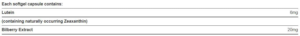 Οι ευαίσθητοι ιστοί του ματιού είναι ιδιαίτερα ευάλωτοι στις καταστροφικές επιδράσεις των ελεύθερων ριζών. Γι' αυτό τα αντιοξειδωτικά παίζουν τόσο σημαντικό ρόλο στη διατήρηση της υγείας των ματιών. Χόλαντ & Μπάρετ 'μικρό Τυποποιημένη Λουτεΐνη & Μύρτιλλο Συνδυάζει δύο από τα πιο αποτελεσματικά ειδικά αντιοξειδωτικά της φύσης για την υποστήριξη της καλής όρασης. Κάθε μαλακή κάψουλα παρέχει 20 mg τυποποιημένου εκχυλίσματος μύρτιλου και 6 mg λουτεΐνης.