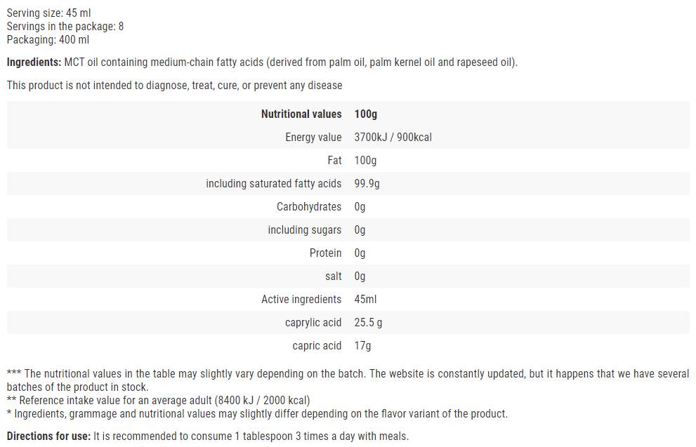 Οδηγίες χρήσης: Συνιστάται να καταναλώνετε 1 κουταλιά της σούπας Hero.Lab Λάδι MCT/Καύσιμο Keto έως και 3 φορές την ημέρα κατά τη διάρκεια των γευμάτων.
