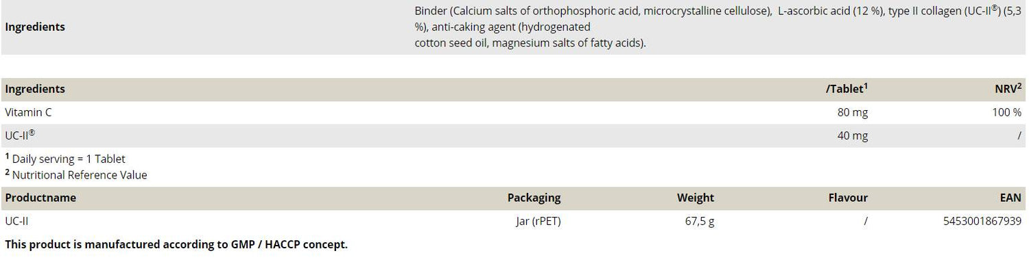 Κολλαγόνο τύπου UC -II - 90 δισκία