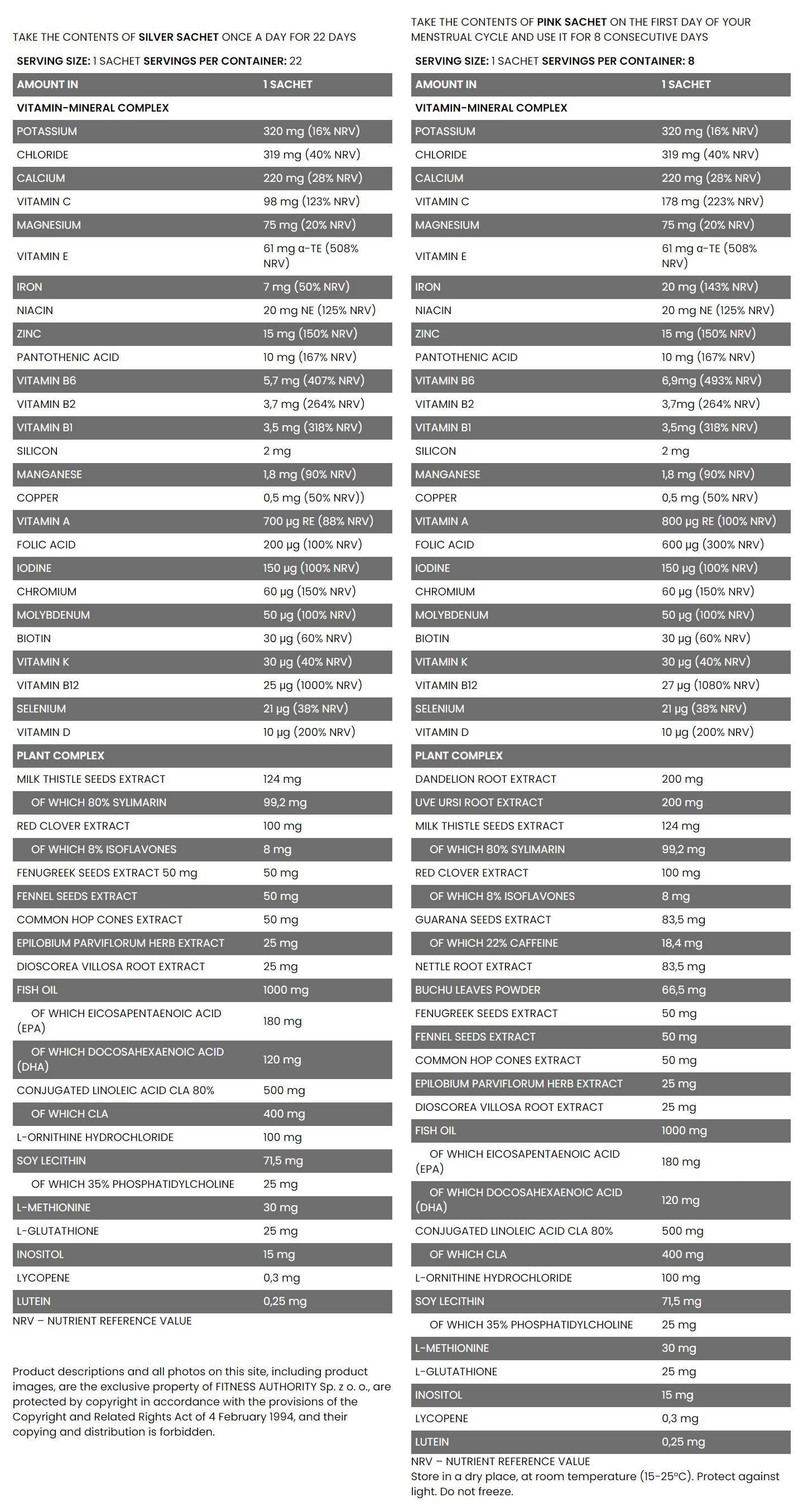 Η συσκευασία περιέχει 22 ασημένια φακελάκια και 8 ροζ φακελάκια. Τα ροζ φακελάκια λαμβάνονται από την πρώτη ημέρα του εμμηνορροϊκού κύκλου της γυναίκας και λαμβάνονται μέχρι το τέλος του ή και για 8 συνεχόμενες ημέρες. Τα ασημένια φακελάκια λαμβάνονται τις υπόλοιπες ημέρες του μήνα.