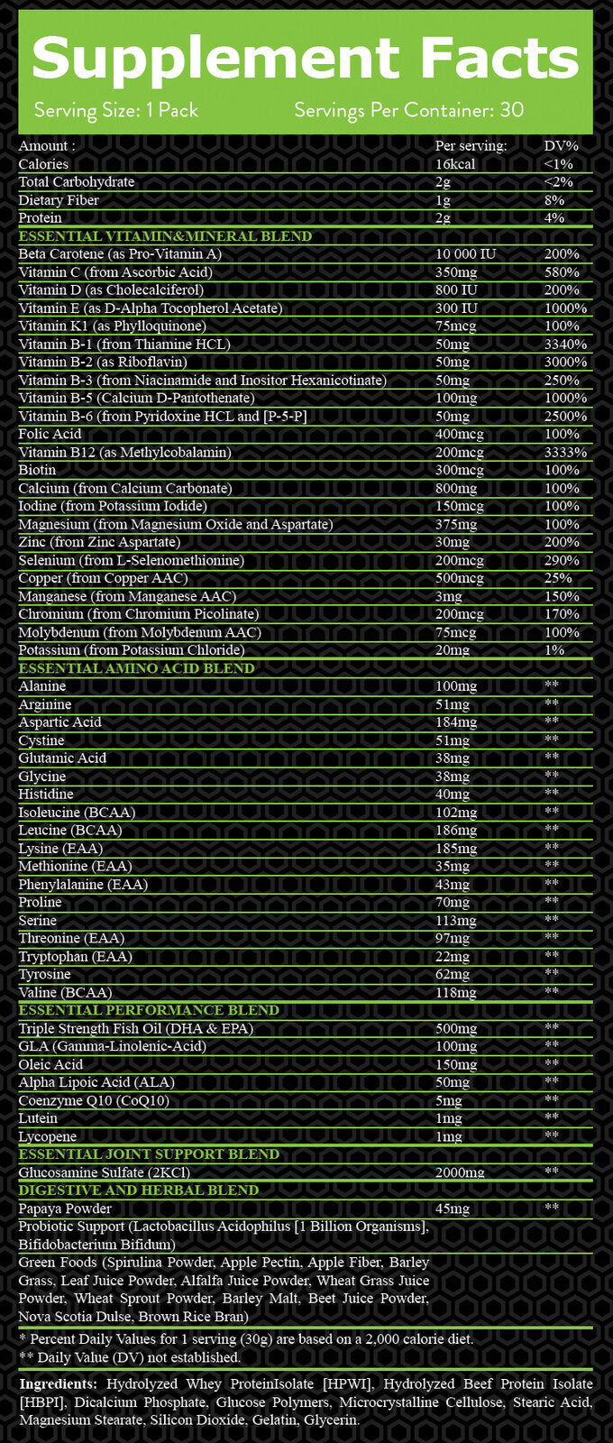Η επιστημονική έρευνα δείχνει ότι τα απαραίτητα αμινοξέα και τα ιχνοστοιχεία είναι ζωτικής σημασίας για την επιδιόρθωση του μυϊκού ιστού και τη βελτίωση της συνολικής σωματικής αντοχής. Οι βιταμίνες του συμπλέγματος Β, καθώς και οι βιταμίνες C και D, παίζουν επίσης σημαντικό ρόλο στον μεταβολισμό και την ανοσολογική λειτουργία.