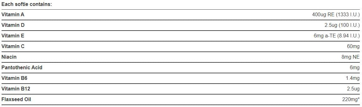 Αυτό το συμπλήρωμα διατροφής περιέχει 12 βιταμίνες και μέταλλα , συμπεριλαμβανομένων βιταμίνες A, C, D, E, B1, B2, B6, B12 και φολικό οξύ , το οποίο μπορεί να βοηθήσει στη βελτίωση της υγείας των παιδιών. Αυτό το συμπλήρωμα περιέχει επίσης ωμέγα-3 λιπαρά οξέα, τα οποία είναι σημαντικά για την υγεία του εγκεφάλου, της όρασης και της καρδιαγγειακής υγείας.