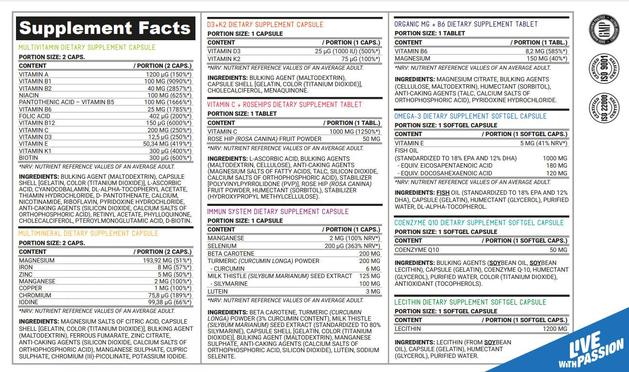 Δοκιμάστε το ισχυρότερο σύμπλεγμα βιταμινών και ιχνοστοιχείων της σειράς μας, που δημιουργήθηκε ειδικά για τις ανάγκες των αθλητών υψηλού επιπέδου, με την εξαιρετικά υψηλή περιεκτικότητά του σε δραστικά συστατικά που ανταποκρίνεται στις υψηλότερες προσδοκίες για συμπληρώματα ιχνοστοιχείων.