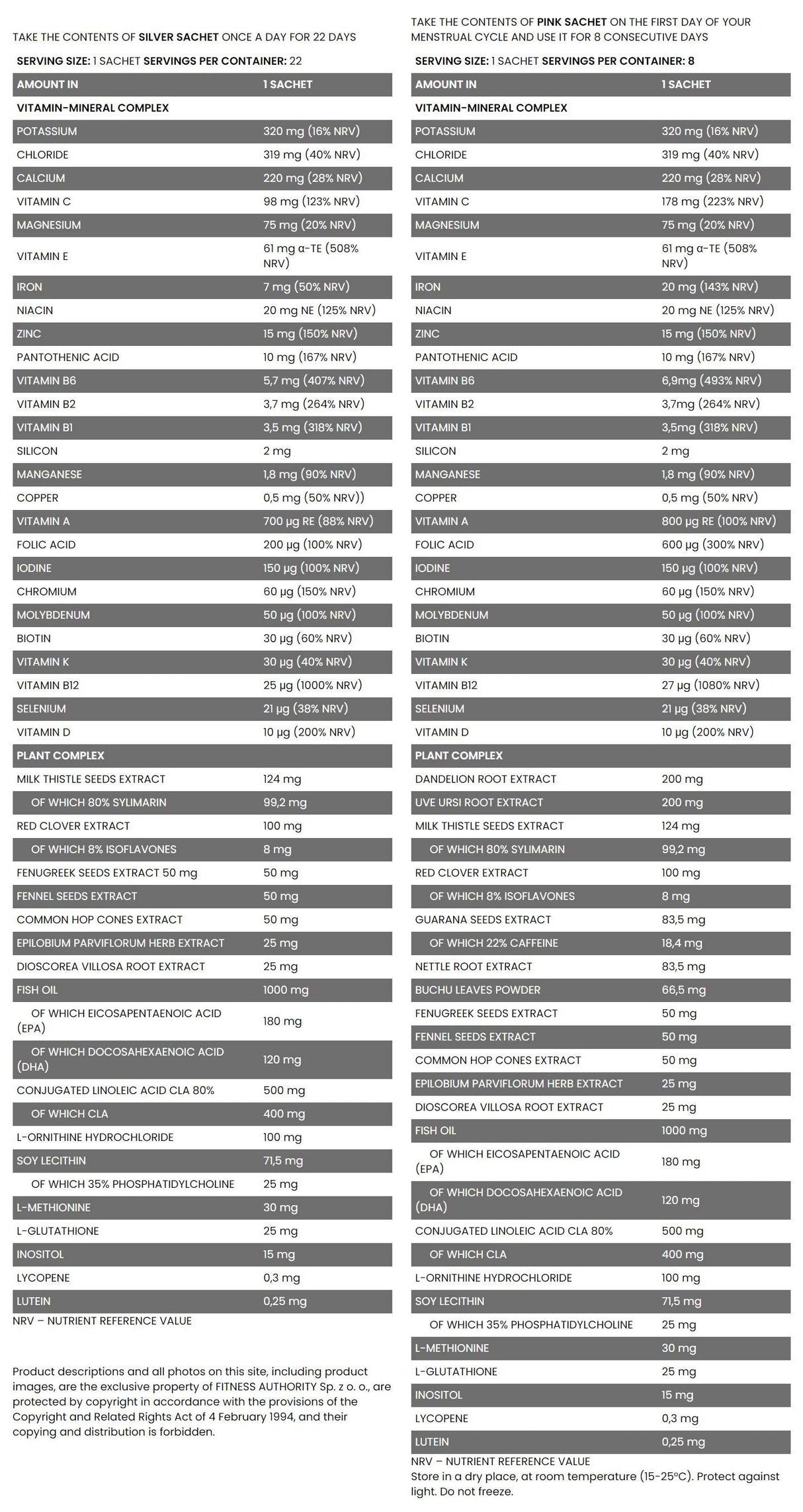 Γυναικεία γυμναστήριο Pak | Πλήρης φόρμουλα πολυπαραμινών για ημέρες εμμηνορροϊκού κύκλου - 22 + 8 πακέτα