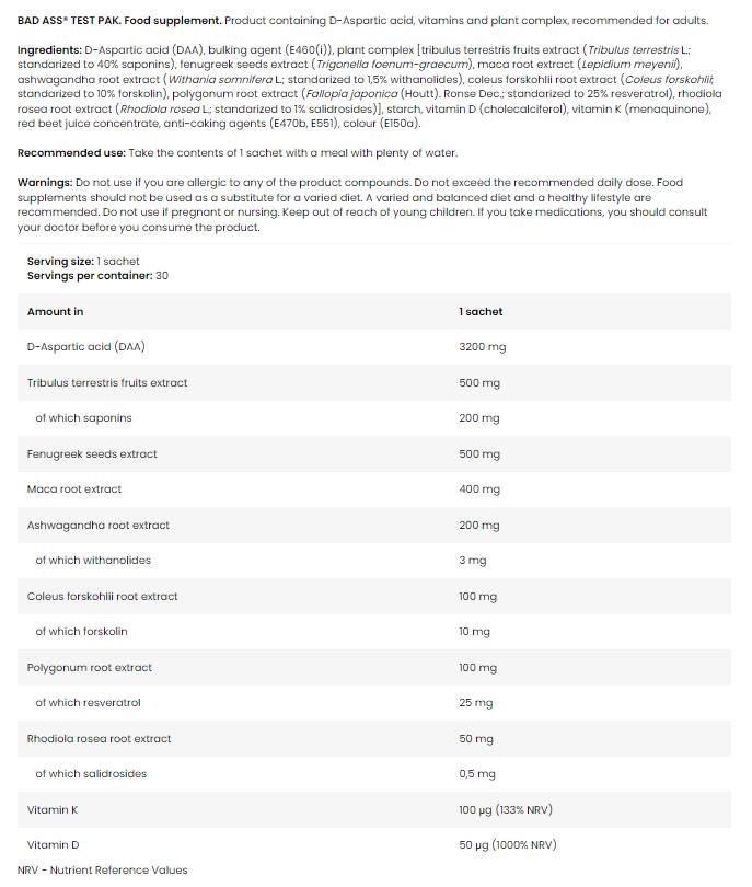 <tc>BAD ASS</tc> Πακέτο Δοκιμής | Προηγμένη Φόρμουλα T-Boost - 30 Φακελάκια