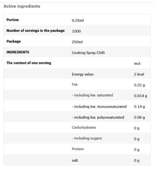 Σπρέι μαγειρικής - Λάδι τσίλι - 250 ml