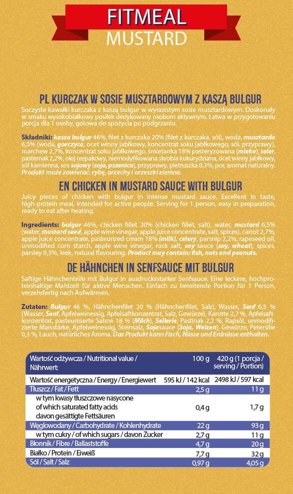 Μουστάρδα FitMeal | Έτοιμη προς κατανάλωση τροφή με υψηλή περιεκτικότητα σε πρωτεΐνες - 420 γραμμάρια