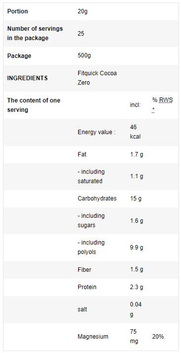 Fitquick Cocoa Zero | με ερυθριτόλη - 500 γραμμάρια