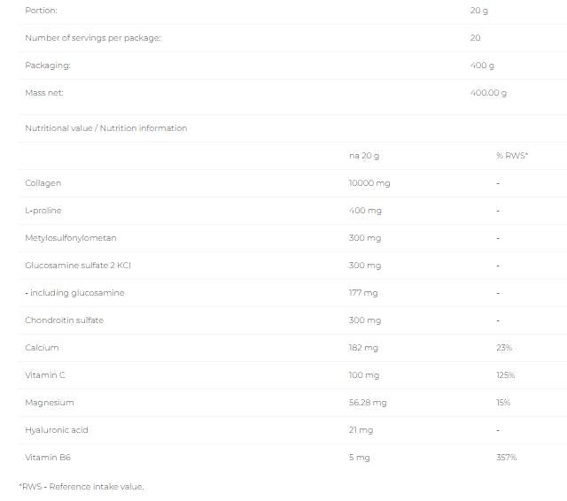 • Πλούσια περιεκτικότητα σε δραστικά συστατικά: Κάθε μερίδα περιέχει κολλαγόνο, γλυκοζαμίνη, χονδροϊτίνη, MSM και υαλουρονικό οξύ.