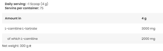 Λευκολεργική σκόνη L -καρνιτίνης - 300 γραμμάρια