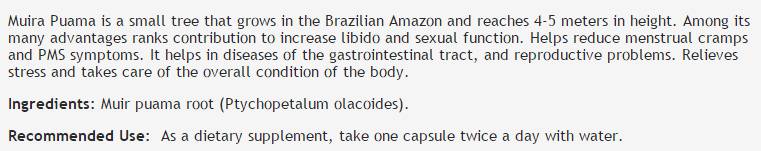 Συστατικά: Ρίζα Muira puama (Ptychopetalum olacoides).