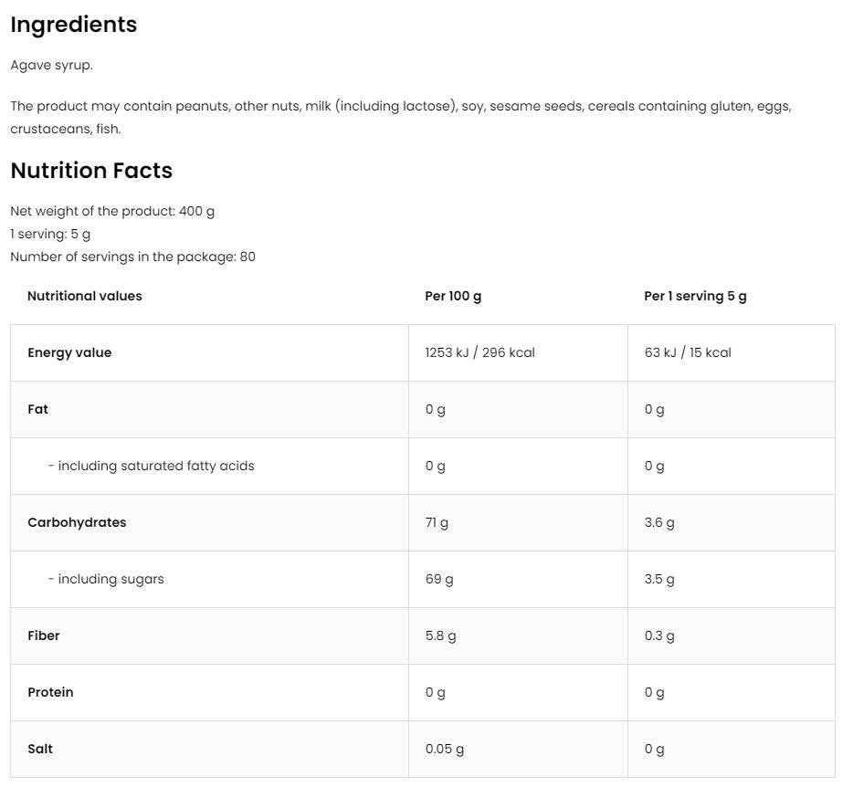 Σιρόπι αγαύης 400 γραμμάρια