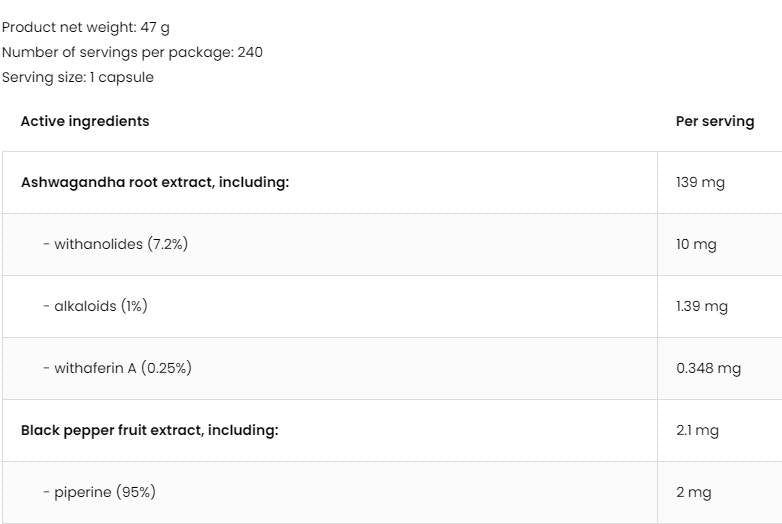 Εκχύλισμα ρίζας Ashwagandha 139 mg 240 κάψουλες