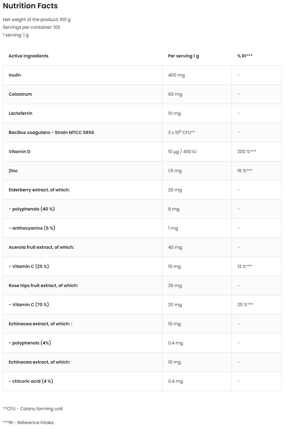 • Εύκολο στην κατανάλωση - διαλυτό σε νερό ή χυμό.