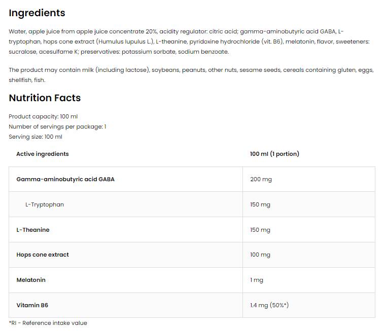 Κρατήστε τον ύπνο με μελατονίνη, GABA, L -θεαρίνη - 100 mL