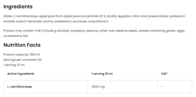 L-καρνιτίνη υγρό 125.000 500 mL