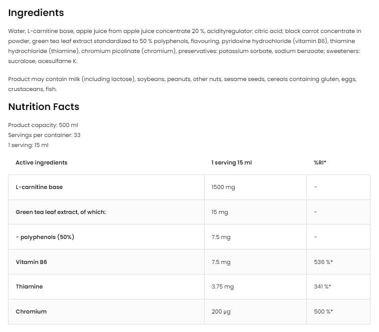 L-καρνιτίνη υγρό | + Πράσινο τσάι και χρωμίου 500 mL