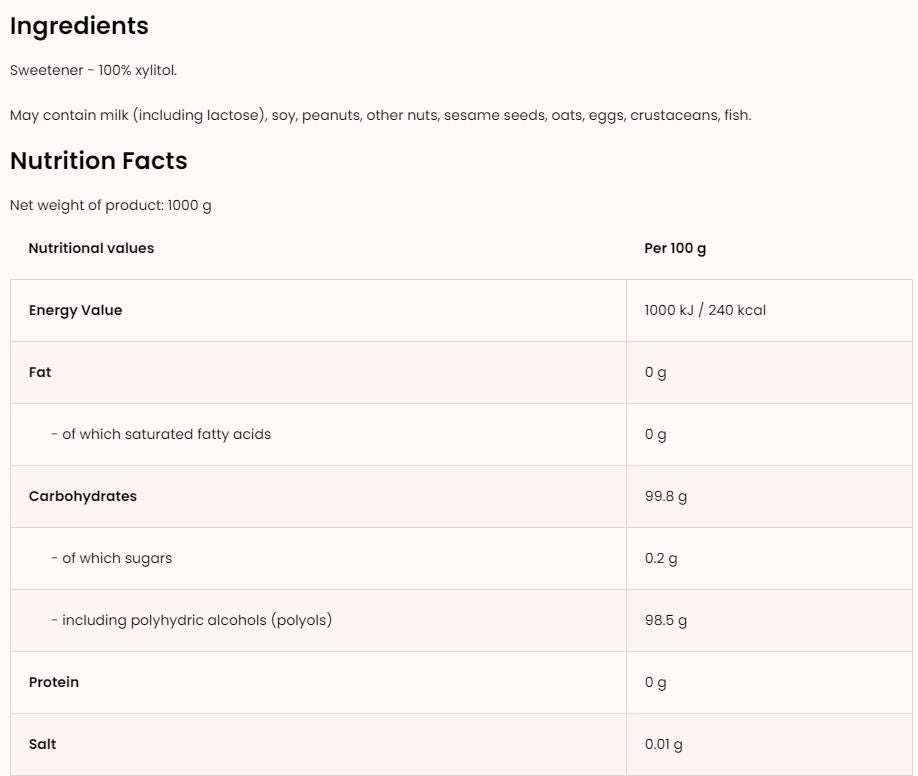 Ξυλιτόλη/χωρίς ζάχαρη γλυκαντικό - 1000 грама