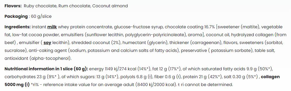 Έχουμε επικοινωνήσει μαζί μας πολλές φορές για να φτιάξουμε επιτέλους μια μπάρα πρωτεΐνης που δεν είναι μόνο νόστιμη, χορταστική, πλούσια σε πρωτεΐνες και επιτρέπει γαστρονομικούς πειραματισμούς, αλλά περιέχει και ένα από τα πιο δημοφιλή συστατικά που μπορούν να κάνουν τη μπάρα ακόμα πιο ωφέλιμη - το κολλαγόνο!