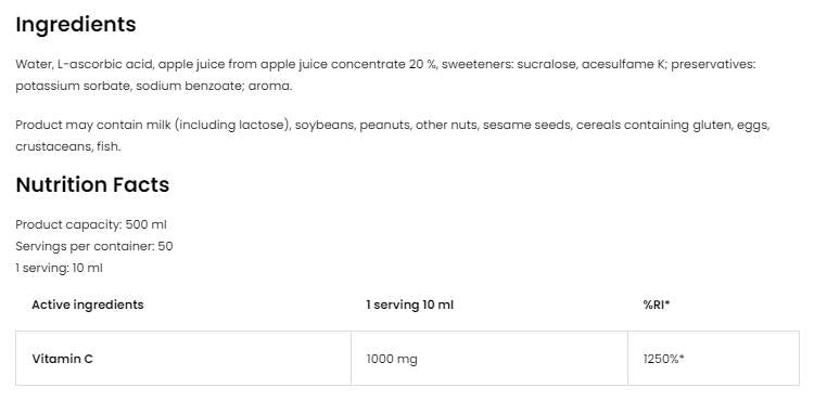 Υγρό Βιταμίνης C 1000 500 ml