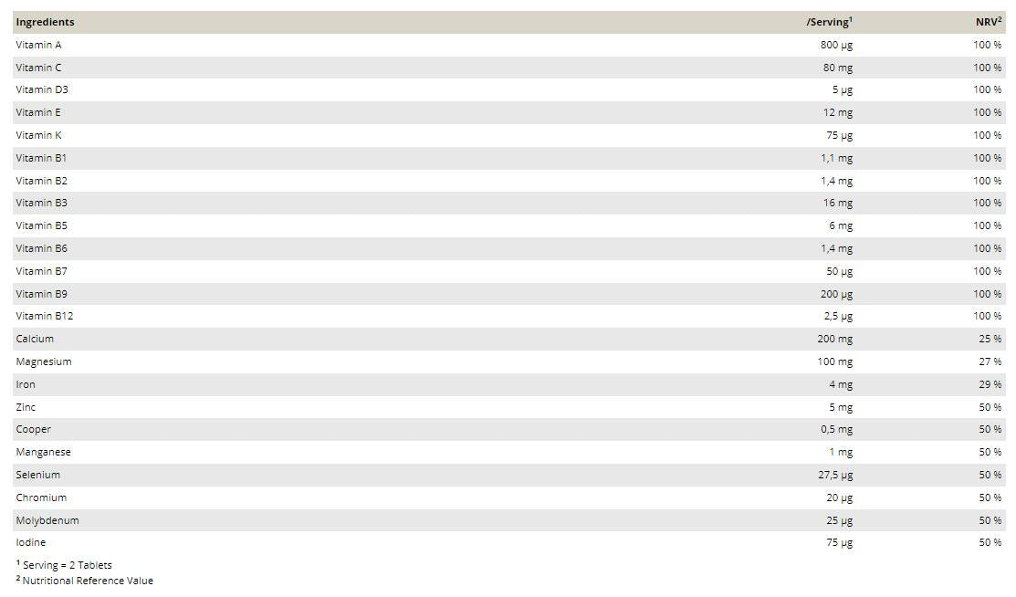 Κάθε δισκίο VITAMIN AZ σας παρέχει έναν συνδυασμό 28 απαραίτητων βιταμινών, μετάλλων και ιχνοστοιχείων για τον οργανισμό σας. Τα δισκία «αποδεσμεύονται με χρονική διάρκεια», δηλαδή παρέχονται ομοιόμορφα στον οργανισμό σε διάστημα ωρών και απορροφώνται ή αξιοποιούνται με τον βέλτιστο τρόπο.