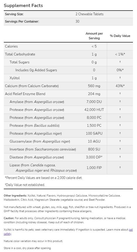 Ανακούφιση οξέος με ένζυμα - 60 μασώμενα δισκία