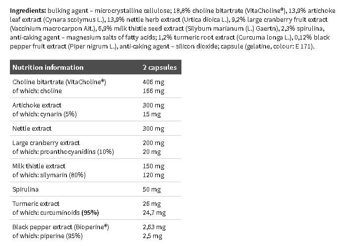 Χολίνη , το εκχύλισμα γαϊδουράγκαθου και το εκχύλισμα αγκινάρας βοηθούν στη σωστή λειτουργία του ήπατος.