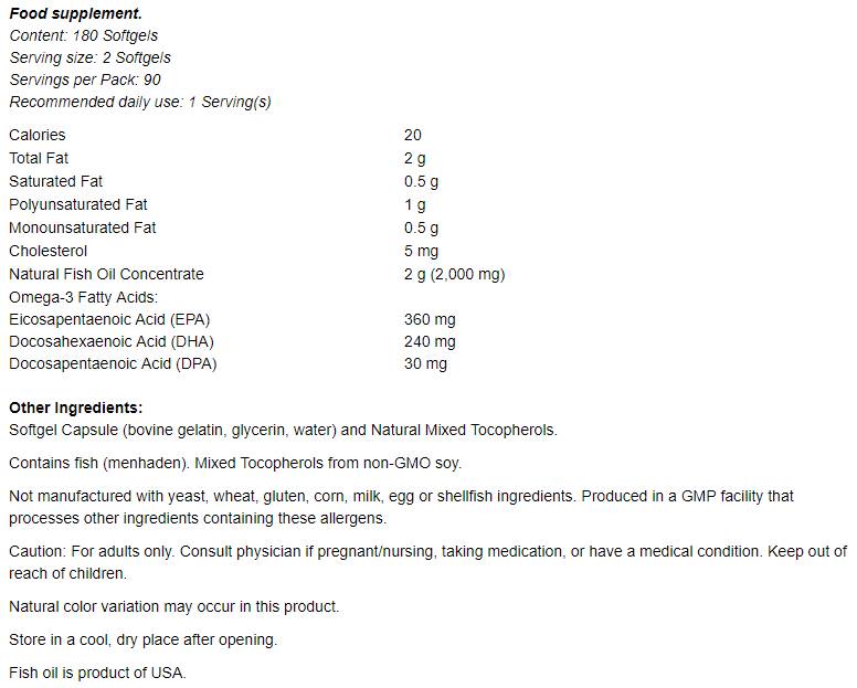 Σημαντικό: Το προϊόν δεν είναι κατάλληλο για άτομα που έχουν αλλεργία στο ψάρι ή τα θαλασσινά. Συμβουλευτείτε γιατρό πριν από τη χρήση εάν έχετε συγκεκριμένα προβλήματα υγείας ή λαμβάνετε φαρμακευτική αγωγή.