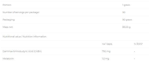• Περιέχει 750 mg GABA και 1 mg μελατονίνης ανά μερίδα