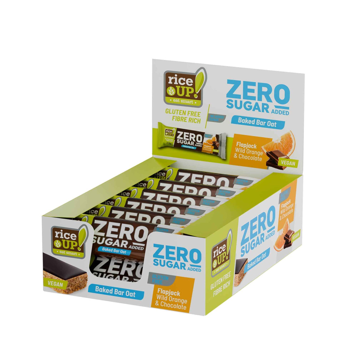 Το μόνο προϊόν στον κόσμο – μια μπάρα ενέργειας με flapjack, ΧΩΡΙΣ ΓΛΟΥΤΕΝΗ και ΧΩΡΙΣ ΠΡΟΣΘΗΚΗ ΖΑΧΑΡΗΣ. Ένας μοναδικός συνδυασμός υγιεινών και ταυτόχρονα θρεπτικών συστατικών. Οι καταναλωτές με έναν ενεργό και πολυάσχολο τρόπο ζωής αναζητούν εύκολες λύσεις για να καλύψουν τις ενεργειακές τους ανάγκες καθ' όλη τη διάρκεια της ημέρας. Για αυτούς, τα τρόφιμα πρέπει να έχουν ευεργετικές ιδιότητες, ώστε να μην αναζητούν επιπλέον τρόπους για να κάψουν επιπλέον θερμίδες. Το flapjack χωρίς γλουτένη ZeroSugar είναι η τέλεια πηγή «αργών» υδατανθράκων το πρωί για πρωινό ή για ελεγχόμενη απελευθέρωση ενέργειας πριν από την προπόνηση. Ιδανικό για μια δίαιτα σε συνδυασμό με προπόνηση, επειδή υποστηρίζει την ανάκτηση ενέργειας χωρίς πρόσληψη ζάχαρης. Μόνο το RiceUP! ZERO SUGAR Flapjack προσφέρει έναν μοναδικό συνδυασμό βρώμης χωρίς γλουτένη και άλλων υγιεινών και θρεπτικών στοιχείων για να παρέχει ελεγχόμενη ενέργεια, σε συνδυασμό με εξαιρετική γεύση. Το προϊόν περιέχει βρώμη υψηλής ποιότητας χωρίς γλουτένη από τη Φινλανδία, που προτιμάται για την καθαρότητά της και την έλλειψη ακαθαρσιών.