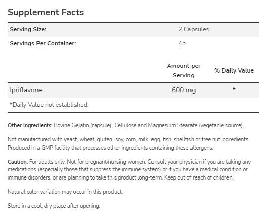 Σημαντικό: Πριν ξεκινήσετε να παίρνετε Ιπριφλαβόνη, συμβουλευτείτε έναν γιατρό, ειδικά εάν έχετε υπάρχοντα προβλήματα υγείας ή λαμβάνετε φάρμακα. Δεν συνιστάται για έγκυες και θηλάζουσες γυναίκες.
