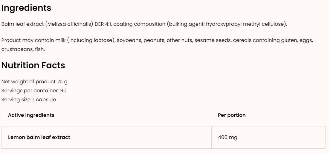 Βάλσαμο λεμονιού 400 mg | Vege - Balm Lemon 90 κάψουλες