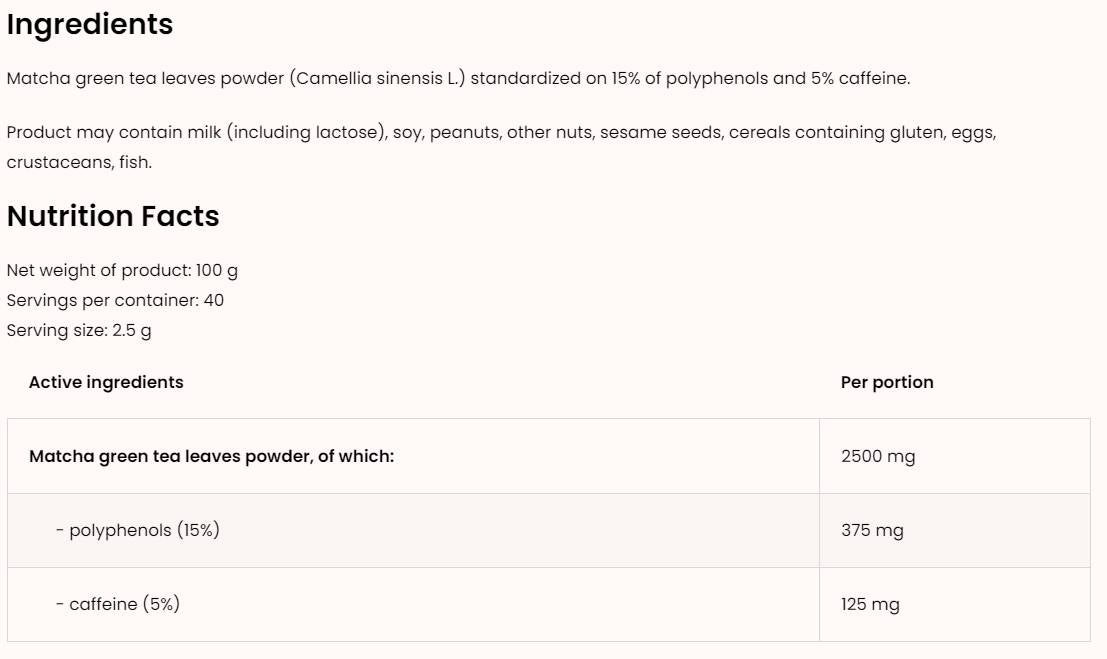 Είναι σημαντικό να σημειωθεί ότι άτομα με αλλεργίες στην καφεΐνη ή καρδιακές παθήσεις θα πρέπει να συμβουλευτούν γιατρό πριν πάρουν matcha. Επίσης, η υπερβολική κατανάλωση μπορεί να οδηγήσει σε ανεπιθύμητες ενέργειες, επομένως είναι καλύτερο να καταναλώνεται με μέτρο.