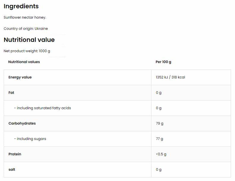 Φυσικό μέλι ηλίανθου/φυσικό μέλι ηλίανθου 1000 γραμμάρια
