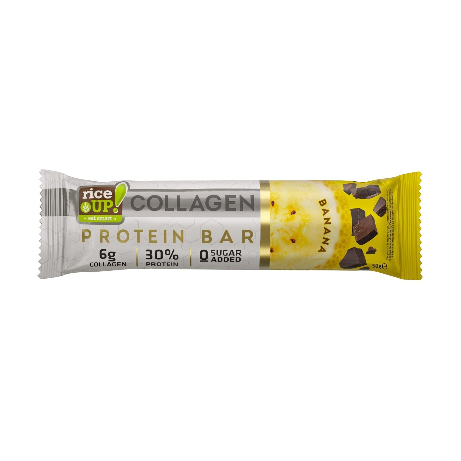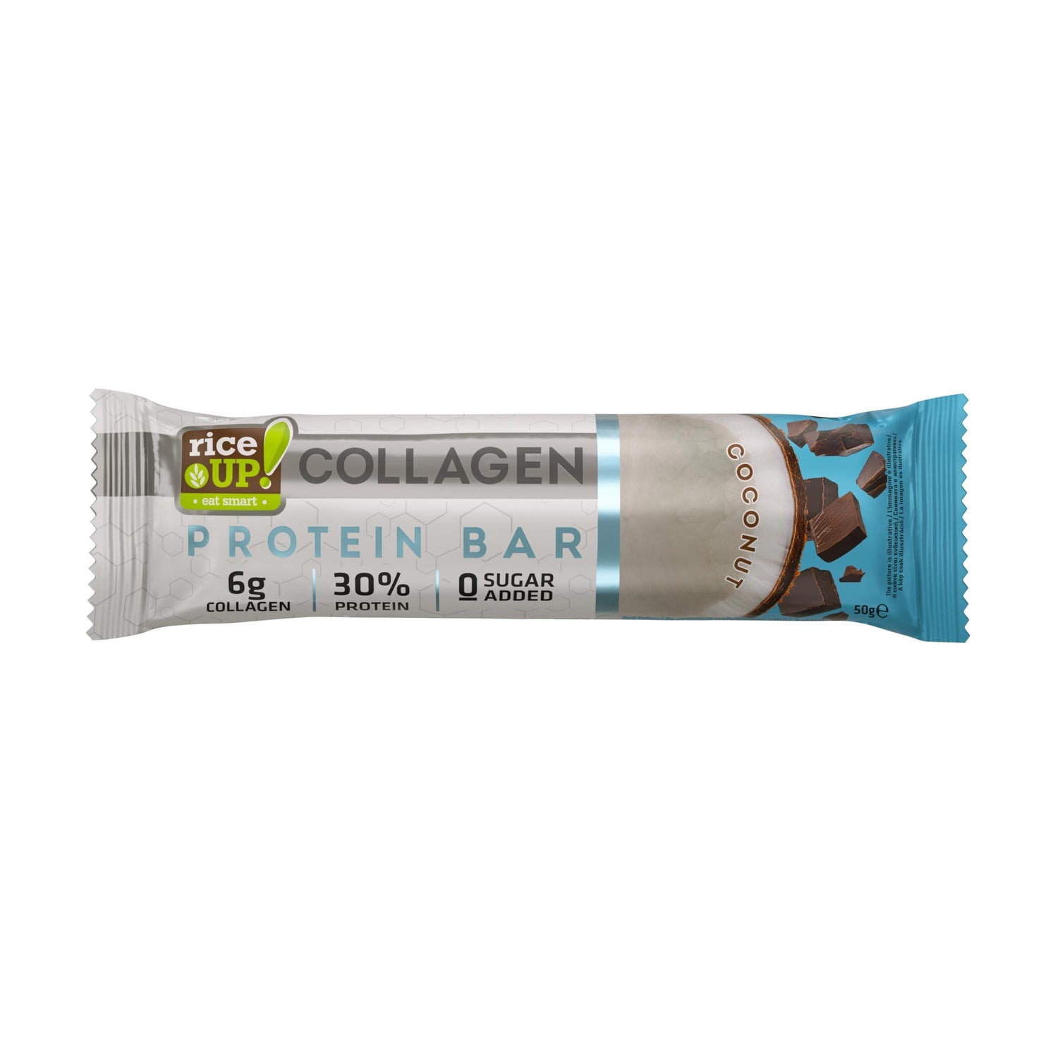 Η μπάρα περιέχει 6.000 mg υδρολυμένων πεπτιδίων κολλαγόνου βοοειδών (Τύποι Ι & III), τα οποία αποτελούν βασικό συστατικό της φόρμουλας RiceUP! Collagen Bar. Το κολλαγόνο είναι μια δομική πρωτεΐνη που υπάρχει φυσικά στο σώμα και παίζει σημαντικό ρόλο στην δέρμα, συνδετικοί ιστοί, οστά, μαλλιά και νύχια.