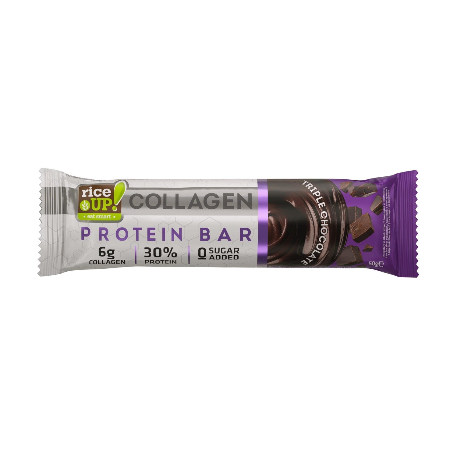 RiceUP! Μπάρα Πρωτεΐνης Κολλαγόνου είναι ένα λειτουργικό επιδόρπιο επόμενης γενιάς που προσφέρει υπέροχη γεύση ενώ παράλληλα παραμένει κάτω από 215 θερμίδες ανά μπάρα, καθιστώντας το ιδανικό σνακ για όσους παρακολουθούν την πρόσληψη θερμίδων τους. Συνδυάζει μια απαλή πρωτεϊνική γέμιση με γεύση βατόμουρου, ένα στρώμα από κρέμα βατόμουρου, χωρίς προσθήκη ζάχαρης, και λεπτά τσιπς κακάο, όλα επικαλυμμένα με αληθινή σοκολάτα γάλακτος, με χωρίς φοινικέλαιο. 🍓🍫