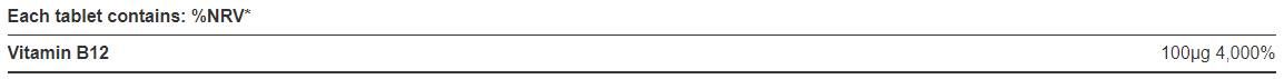 Βιταμίνη Β12 Κυανοκοβαλαμίνη 100 mcg παρέχει 100mcg βιταμίνης Β12.