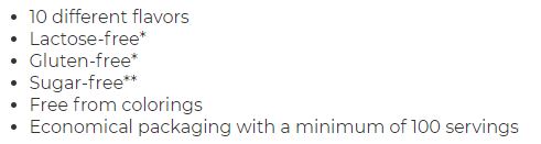 • Με τη βοήθεια της σουκραλόζης, παρέχει γλυκύτητα χωρίς θερμίδες